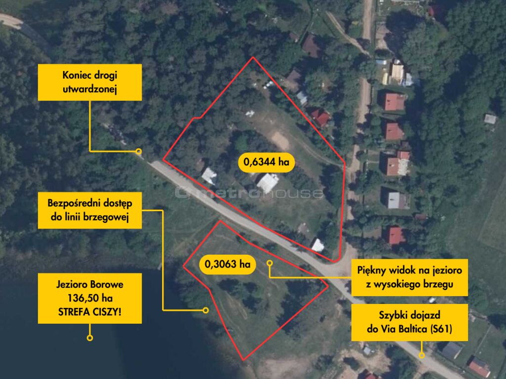 Działka położona bezpośrednio nad Jeziorem Borowym objętym strefą ciszy. Jezioro Borowe łączy się przez przesmyk z kolejnym jeziorem - otoczonym lasami Jeziorem Skrodzkim.